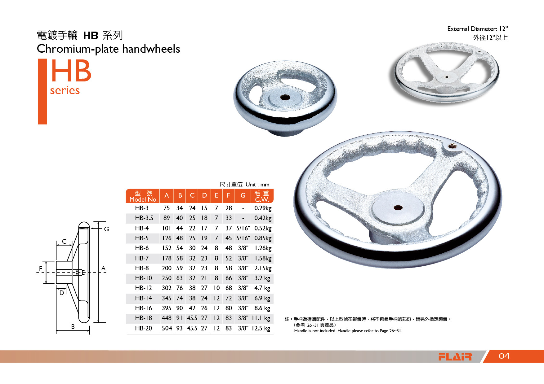 CHROMIUM-PLATE HAND WHEEL HB