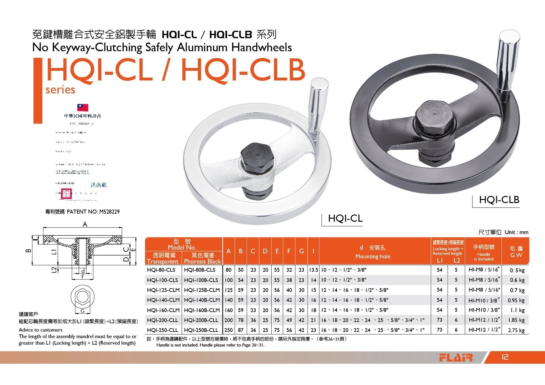 キー溝フリークラッチ安全性アルミハンドホイール HAR-CL / HQI-CL